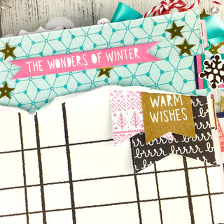 The inside cover has items from the December Fox Box to add a little interest. You'll notice that I sprinkled little gold sequins throughout the book to provide some cohesion.